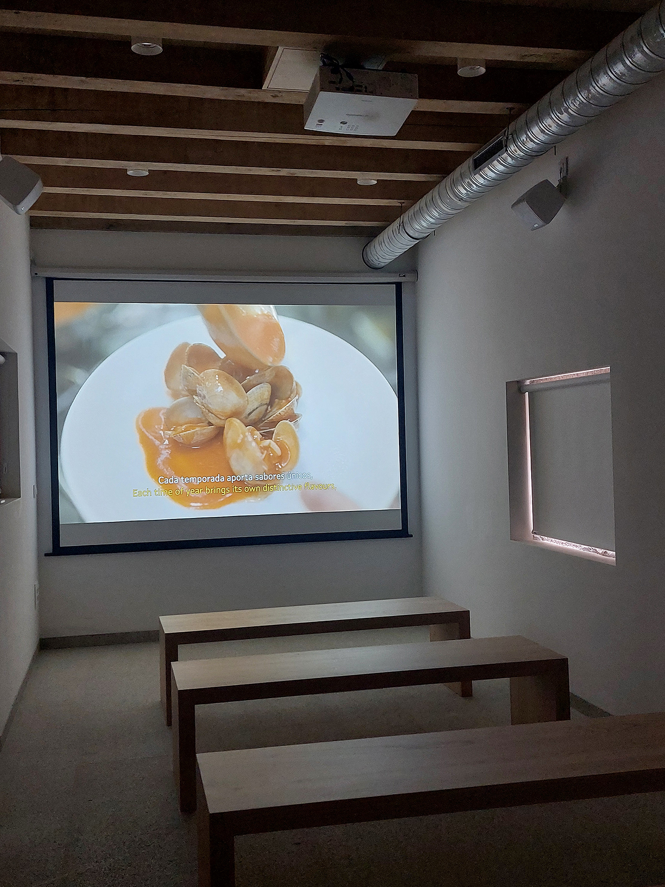 La museografía se despliega en diversos ámbitos complementarios, como un restaurante-tienda, aulas de cata y demostración, y espacios temáticos dedicados a la dieta atlántica, los productos de temporada, los paisajes con sabor o la cocina como espacio de evolución entre tradición e innovación. La intervención integra recursos gráficos, audiovisuales, olfativos e interactivos, así como un rincón didáctico para los más curiosos, ofreciendo una experiencia inmersiva y atractiva para públicos diversos.